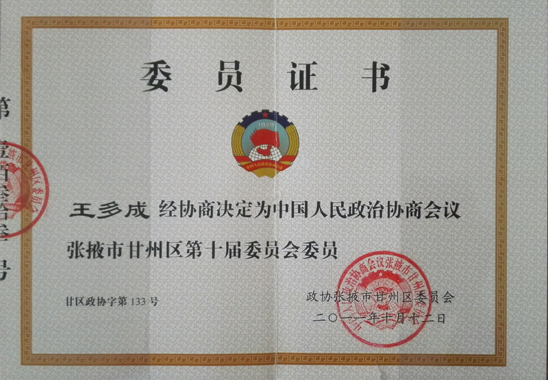| 您現(xiàn)在的位置: 張掖市多成農(nóng)業(yè)有限公司 >> 資質(zhì)榮譽(yù) >> 個(gè)人榮譽(yù) >> 正文 |